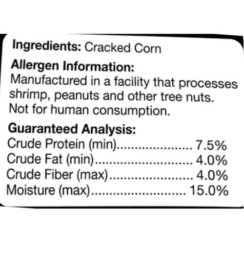 Brown’s® Gourmet Cracked Corn is not your ordinary cracked corn. Our select, all-natural corn is cracked to just the right size, making it easy for wild birds to eat. These consistently sized pieces are a prized source of essential energy and protein gained from starch and oils.