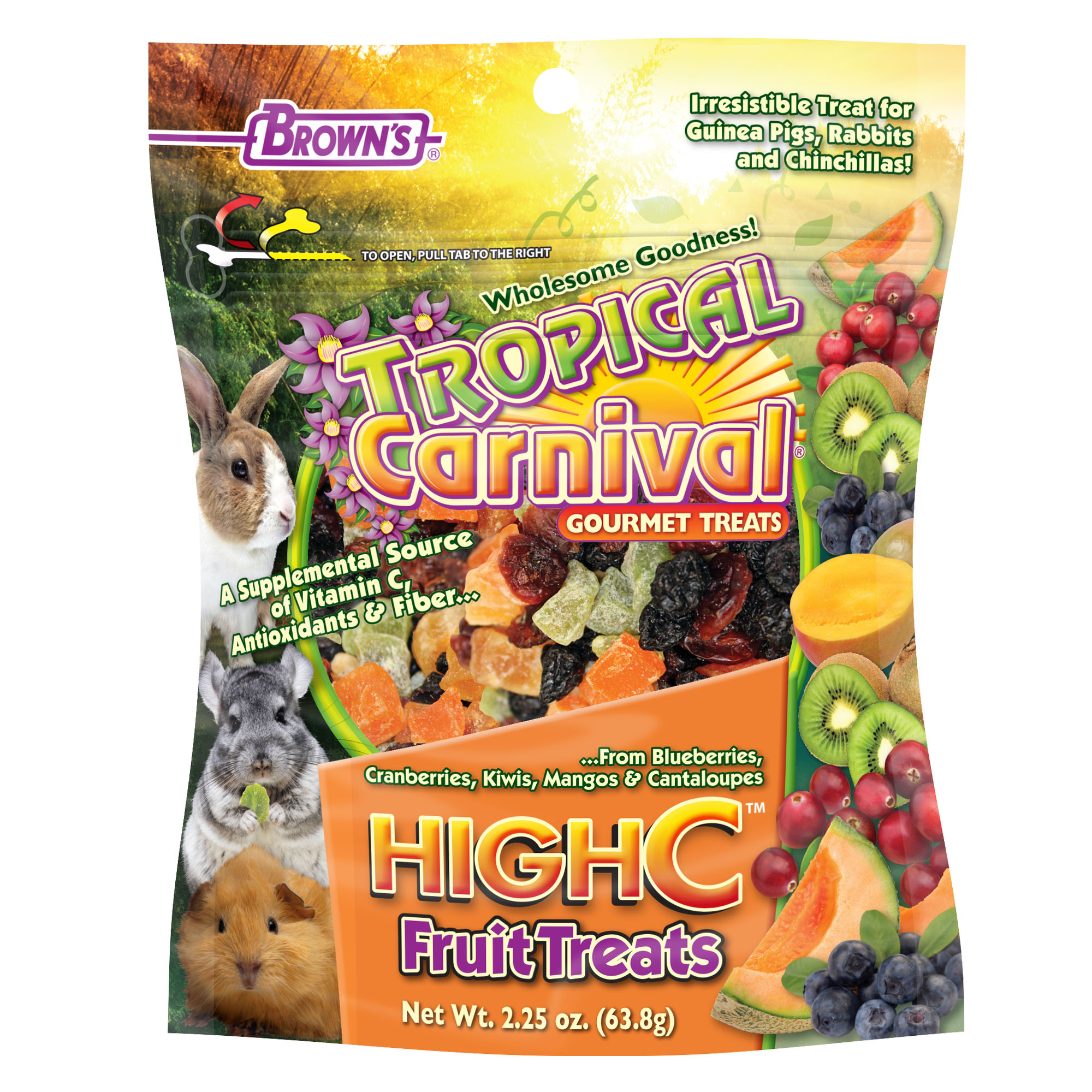 Tropical Carnival® High C Small Animal Treat is a great way to provide a natural source of Vitamin C specifically required by guinea pigs. We’ve blended a medley of irresistible natural ingredients including cranberries, kiwis, blueberries, and cantaloupes, all rich in vitamin C, antioxidants, and a great source of fiber. What a great way to add variety to your pet’s diet and benefit the overall well-being of your companion pet.